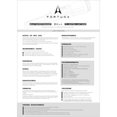 Accédez à des informations complètes sur les détecteurs OKM, telles que les spécifications, les instructions et les conseils de dépannage, grâce à nos manuels détaillés. Que vous soyez débutant ou utilisateur expérimenté, les manuels sont un classique pour travailler de manière autonome avec les détecteurs OKM. Nos manuels sont des outils indispensables pour s'assurer que vous tirez le meilleur parti de votre équipement de détection et que vous effectuez vos analyses de sol de manière efficace et réussie.