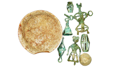 A treasure hunter from Iran sucessfully located an ancient grave with his 3D metal detector eXp 4000 from OKM. Inside the grave he discovered several bronze artifacts like figurines and ancient bells. The treasure hunter processed a measurement in operating mode 'Ground Scan' on clay underground and located the treasure find in an approximate depth of 242 cm.